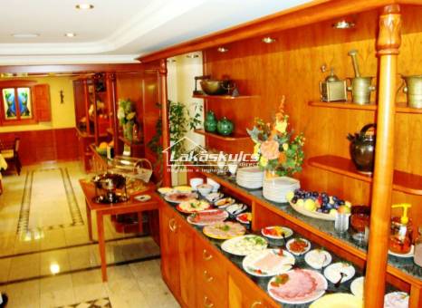 leírás: HÉVÍZEN a villanegyedben 1.038 m2-es telken 600 m2 összes beépítettségű, 14 szobás villa jellegű panzió eladó. Az ingatlan K-D-Ny-i, rálátással a Balatonra, Cserszegtomajra és Hévízre. A Tó fürdőtől 700 méterre található. Az épületben 5 külön bejáratú apartman és 3 stúdió apartman, reggeliző -drinkbár - recepció, konyha, valamint egy 100 m2 alapterületű lakást alakítottak ki. Minden apartman klímaberendezéssel felszerelt. Kertben található egy 9 x 3,6 m-es, 30 m3-es medence ellen áramoltatóval, elhúzható, íves policarbonát tetővel. Mellette van egy Grün Power típusú napkollektor tartállyal, ami a medence vízének a fűtésére rásegít. A ház tetejére napkollektort építettek be, amellyel éven át biztosítják a használati meleg víz energiatakarékos előállítását az épületben. Tervek készültek a villa 18 apartmannal történő bővítésére az ingatlan melletti szabadon álló telek területre, amely érdeklődés esetén hozzá vásárolható. Ár: 1.290.000,- EURO