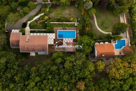 leírás: FULL-FULL PANORÁMA (még a garázs is)! AZ EGÉSZ BALATON A LÁBUNK ALATT! A TÖKÉLETES OTTHON AHOL IGAZÁN KIVÁLTSÁGOSNAK ÉREZHETJÜK MINDEN KÉNYELEMMEL.Ez a hely egy rendkívül egyedülálló része Csopaknak. Hihetetlen kisugárzás, csend, nyugalom, s az elképesztő panoráma. A feltöltődés tökéletes helyszíne. Az ingatlan-komplexum 605m2-es (+ óriási teraszok), és egy hatalmas meseszépen ápolt 3000m2-es intim területen fekszik.A rendkívül igényes, nagyon magas minőségben megépített ház a hatalmas nappalin kívül 4 db hálószobával és 5db fürdőszobával rendelkezik, illetve egy személyzeti szobával, amelyhez külön fürdő is kapcsolódik, a konyha teljesen felszerelt Miele gépekkel, ezen kívül 3 kamra is rendelkezésünkre áll a tároláshoz. Minden szoba inverteres klímával van ellátva (hűt-fűt). A fűtést egy Vaillant gázkazán biztosítja. Kialakítás alatt van a hőszivattyú rendszer is. A rezsije hihetetlenül alacsony. A ház vízrendszere vízlágyítóval van ellátva. Minden nyílászáron redőny, szúnyoghálók, sötétítők. Pihenő-wellnessrészlegben: szauna, gőzkabin, masszázs medence A 8X15 m-es kültéri medence mellett pergolás panorámás terasz, gyönyörű ápolt 3000m2-en fekvő terület. Az ingatlan biztonsági kamerarendszerrel el van látva. A gépkocsinak 2 állásos beállóhely van biztosítva a garázsban, illetve felszíni parkolók is rendelkezésre állnak. BŐVEBB INFORMÁCIÓ, MEGTEKINTÉS BIZTOSÍTÁSA, BALATONFÜREDI KIZÁRÓLAGOS ÉRTÉKESÍTÉS::LAKÁSKULCS INGATLAN,8230 Balatonfüred, Aranyhíd sétány 8. (Aura Homes Ny-i oldal) +36309481140