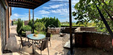 leírás: CSOPAKON ÖRÖK PANORÁMÁS, KÜLÖNLEGES HANGULATÚ CSALÁDIHÁZ ELADÓ! A népszerű Balaton parti településen kínáljuk eladásra ezt az ingatlant, amely nagyon szép ápolt kerttel rendelkezik, kerti tóval, aranyhalakkal,parkosított kerttel, igazi oázis a kikapcsolódáshoz.Az ingatlan szomszédságában a csopaki védett szölő ültetvények egészítik ki a balatoni panoráma hangulatát. A telken két épület található, a fő épület alkalmas, családiházként vagy nyaralókénti hasznosításra.Az épületbe érve előtér, tágas nappali, hálószoba, fürdőszoba, konyha, hangulatos, panorámás télikertben találjuk az étkezőt.A tetőtérben lévő óriási hálószoba fantasztikus panorámával rendelkezik.Az alsó szint külön bejárattal is rendelkezik, valamint a belső lépcsőn keresztül is megközelíthető, itt két szoba és gardrób gondoskodik a kényelemről. A kert nyugati részében került megépítésre egy 50nm-es épület, amely vendég háznak vagy alkotó műhely,galériaként is hasznosítható.Az ingatlan garázzsal rendelkezik, valamint a zárható udvarban 3autónak is van még hely. Amennyiben ez a művészi szellemiséget sugárzó örök panorámás , gyönyörű ingatlan felkeltette az érdeklődését, kérjük hívja a balatonfüredi Lakáskulcs Ingatlan Irodát a +36 304506590-es telefonszámon.